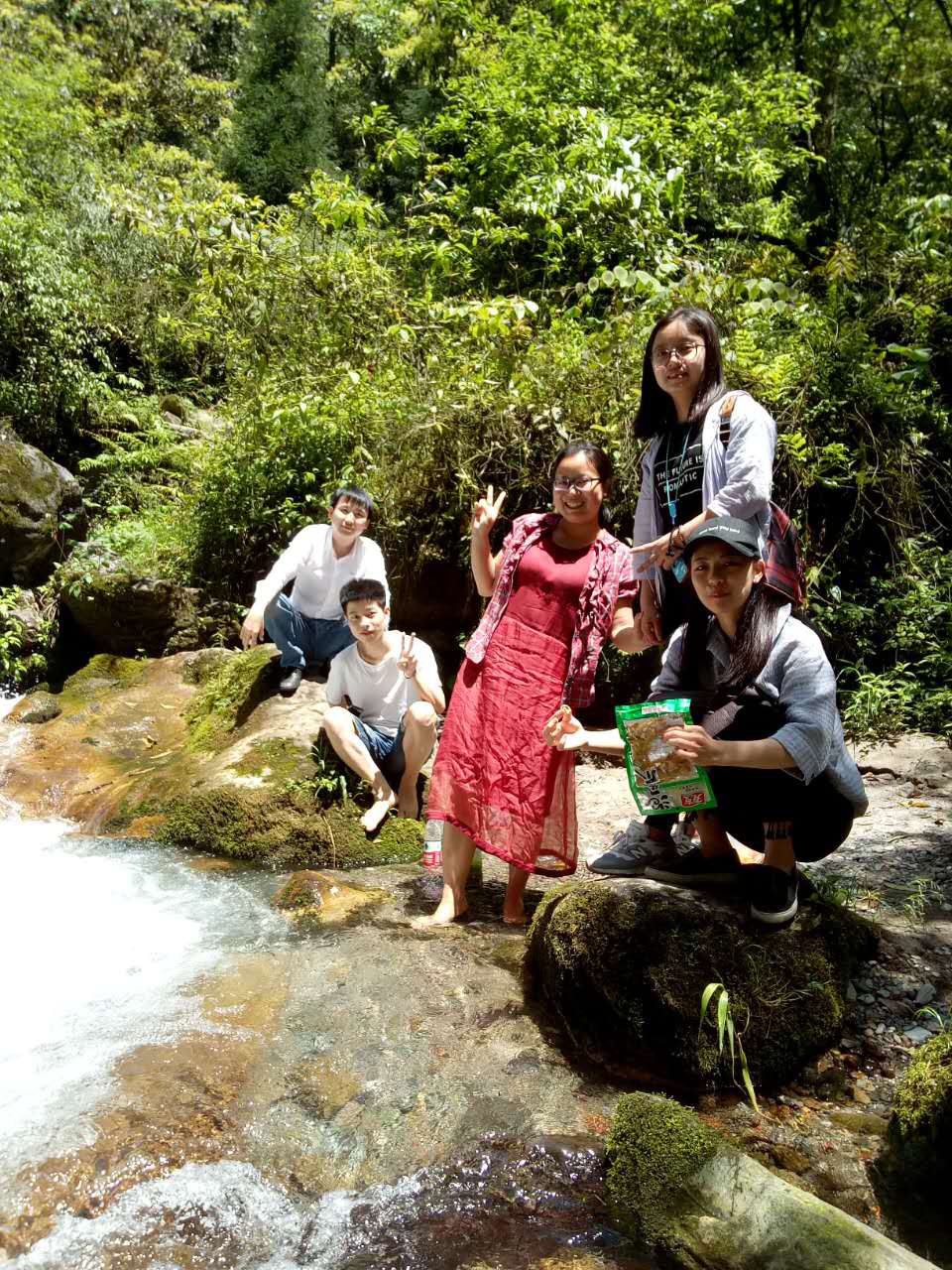 伴著明媚的陽光我們開啟了登山之旅,1700米的高度并沒有讓我們卻步,登山路上雖是汗流浹背,但卻能夠靜靜欣賞四周的美景,品味自然志趣。一路上綠意盎然,遠處高山層疊,近處流水潺潺,隨著高度的增加,壯觀的瀑布映入眼簾,陽光照耀下,瀑布像鍍上了一層金色光環,美不勝收。汗水打濕了衣服和頭發,腳步也越發沉重,但方法人沒有一個人放棄,大家自發地為自己、為對方加油打氣,再短暫休息后又卯足了勁繼續前進。